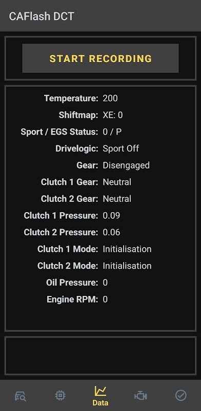 - 클러치 팩 압력, 클러치 팩 기어 선택, 활성 변속 맵 및 내부 기어박스 오일 온도와 같은 데이터를 읽고 기록합니다.