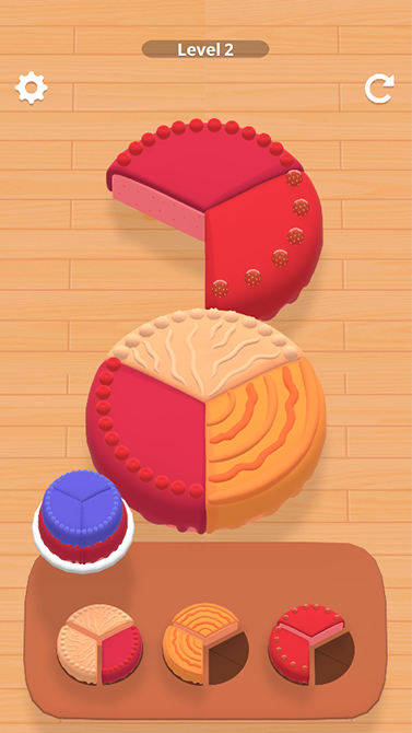 혼합 케이크 레이어를 탭하여 동일한 유형의 케이크 조각을 정렬합니다.