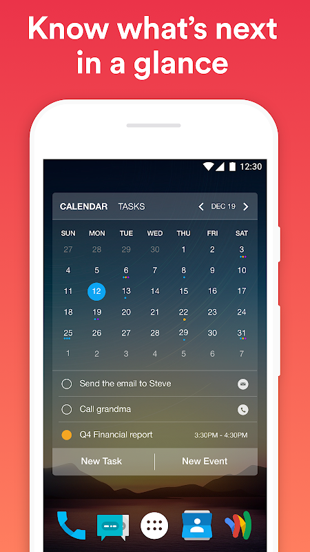 캘린더 앱으로 생활을 단 몇 초 만에 정리하세요. 수상 경력에 빛나는 Google 캘린더 대체 앱은 캘린더 이벤트, 일정, 작업, 목록, 알림, 식료품 목록 등을 관리합니다.