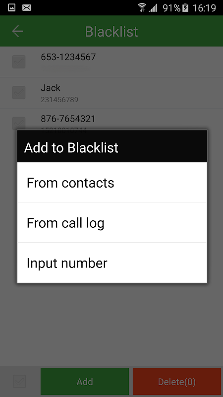 - 블랙리스트에 원치 않는 전화 번호를 추가,이 응용 프로그램은 자동으로 블랙리스트를 차단합니다.