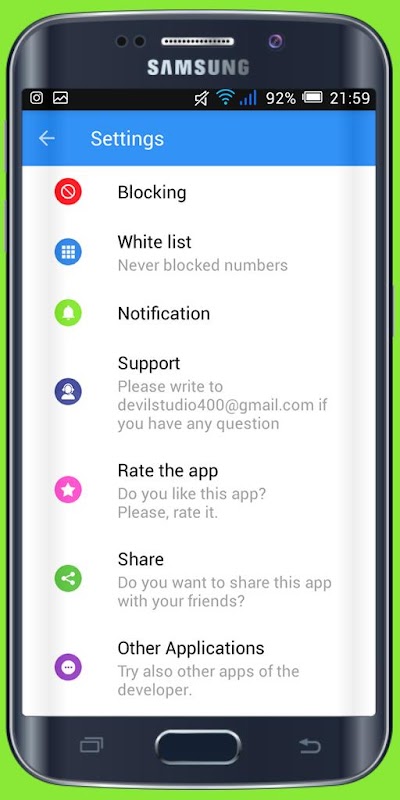 Using the options of this tab, you can block calls from private, unknown or all numbers. Also, you can turn on/off blocking with one simple tap.