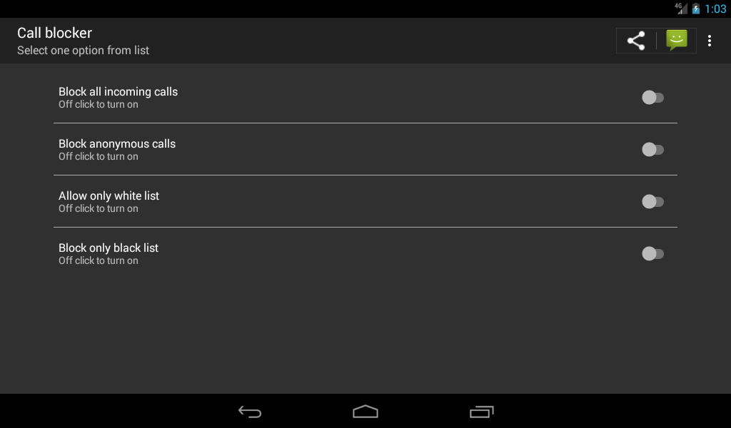 Don't let unwanted calls disturb you anymore. Call Blocker helps you to block unwanted calls. you can block unknown callers , block all incoming calls ,block certain numbers (black list numbers) or allow only certain numbers(white list numbers)