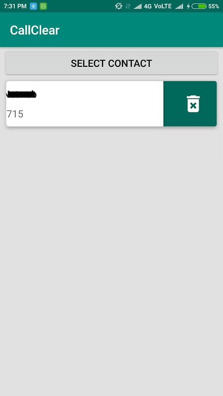 Call Clear remove dialed received missed calls for selected contact in this app