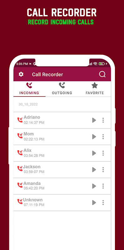 자동 통화 녹음: 통화 녹음기 - 통화 녹음을 사용하면 편리하게 자동 통화 녹음을 즐길 수 있습니다. 기능을 활성화하기만 하면 앱이 번거로움 없이 모든 수신 및 발신 통화를 자동으로 녹음합니다.