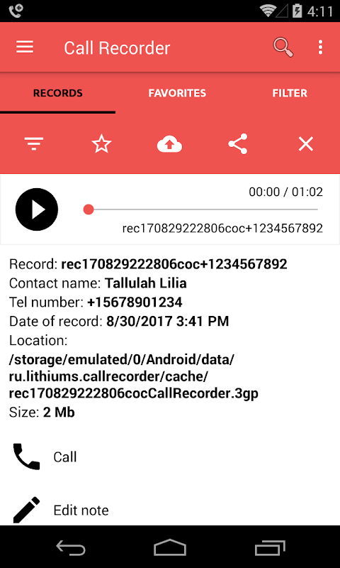 In the settings, you can specify whether to save the entries automatically after the call or to ask, you can set the minimum size of the recording file and the minimum duration of the call.