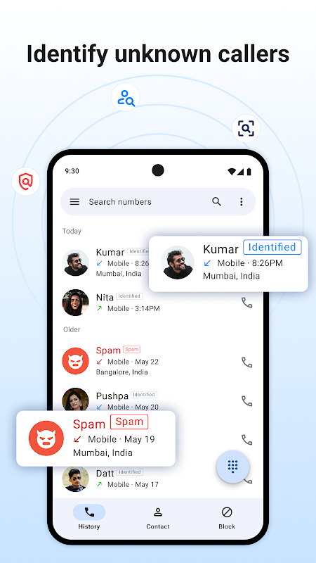 실제 발신자 이름과 가짜 발신자를 식별하고 스팸 전화 및 원치 않는 전화를 차단합니다.
