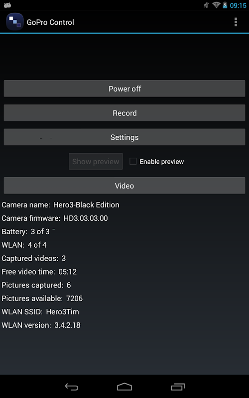 - Enable WiFi on your Android device and on the GoPro (switch to App Wifi mode). Then connect your device to the GoPro using the GoPro Wifi password