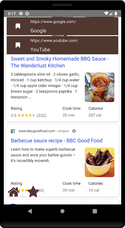 5. STAR 버튼은 웹 페이지를 북마크에 추가합니다.