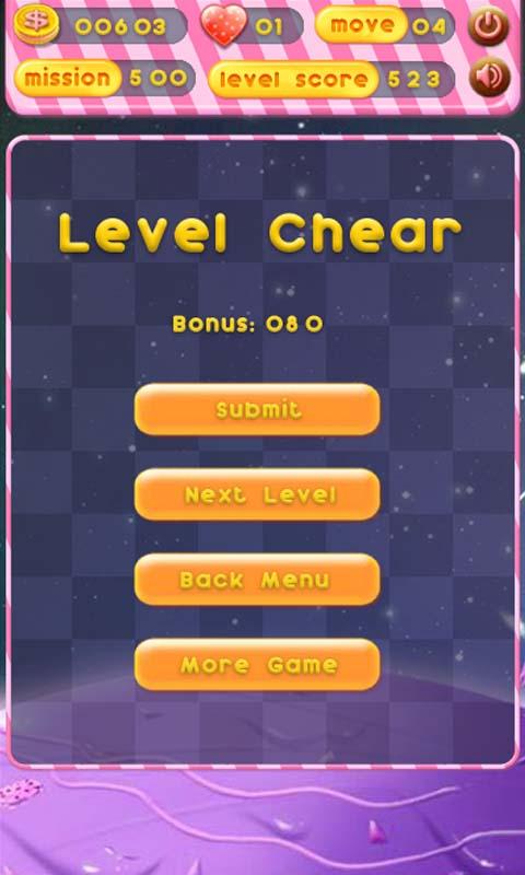 그들을 파괴하기 위해 같은 색으로 두 개 이상의 인접한 사탕을 누릅니다.