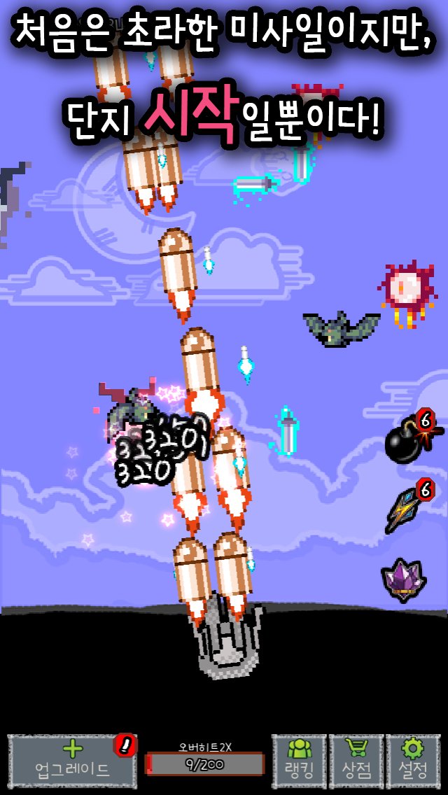 하늘에서 침략해 오는 적을 무찌를 강력크한 미사일을 키워주세요.