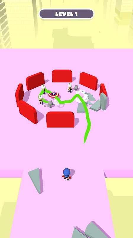 Defeat all the bad guys by using your shield.
