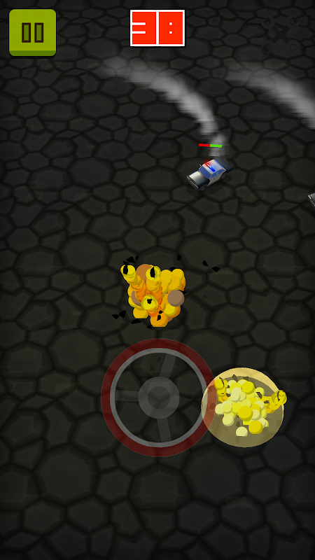 Grab the car wheels and start your journey . The cops are after you . You have to smash the cops .