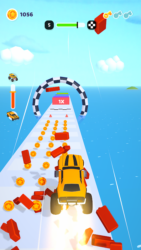 Collect the whole pieces of car on the way in order to form the fastest car you have ever seen. Don’t hit the bothering obstacles so as not to lose some pieces such as wheel, headlight or door. If you could collect the whole pieces without hitting any obstacle, you can turn the car into a monster truck!