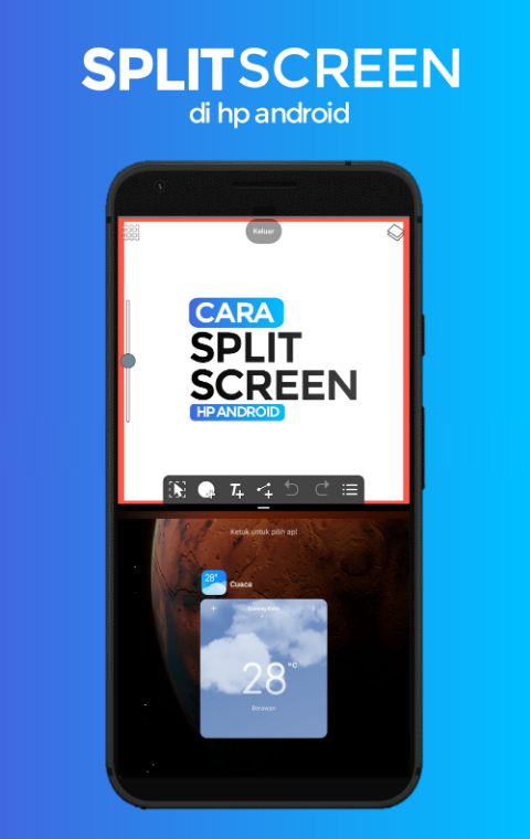Kami akan memberikan tips dan trik cara menggunakan fitur split screen pada Hp Android Anda, namun perlu di ingat bahwa tidak semua aplikasi mendukung fitur Split Screen ini, ada beberapa aplikasi yang yang tidak memungkinkan di buka secara bersamaan. Anda bisa mengunduh dan menginstal aplikasi Cara mudah Split Screen layar Hp Android anda dari play store di genggaman smartphone anda.