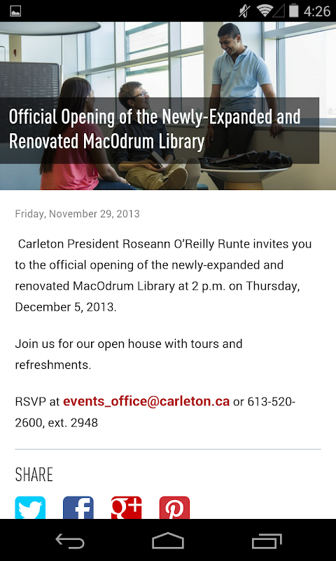 • 뉴스 및 이벤트 - 현재 칼턴 학생들에게 특정의 최신 뉴스와 이벤트를 읽고
