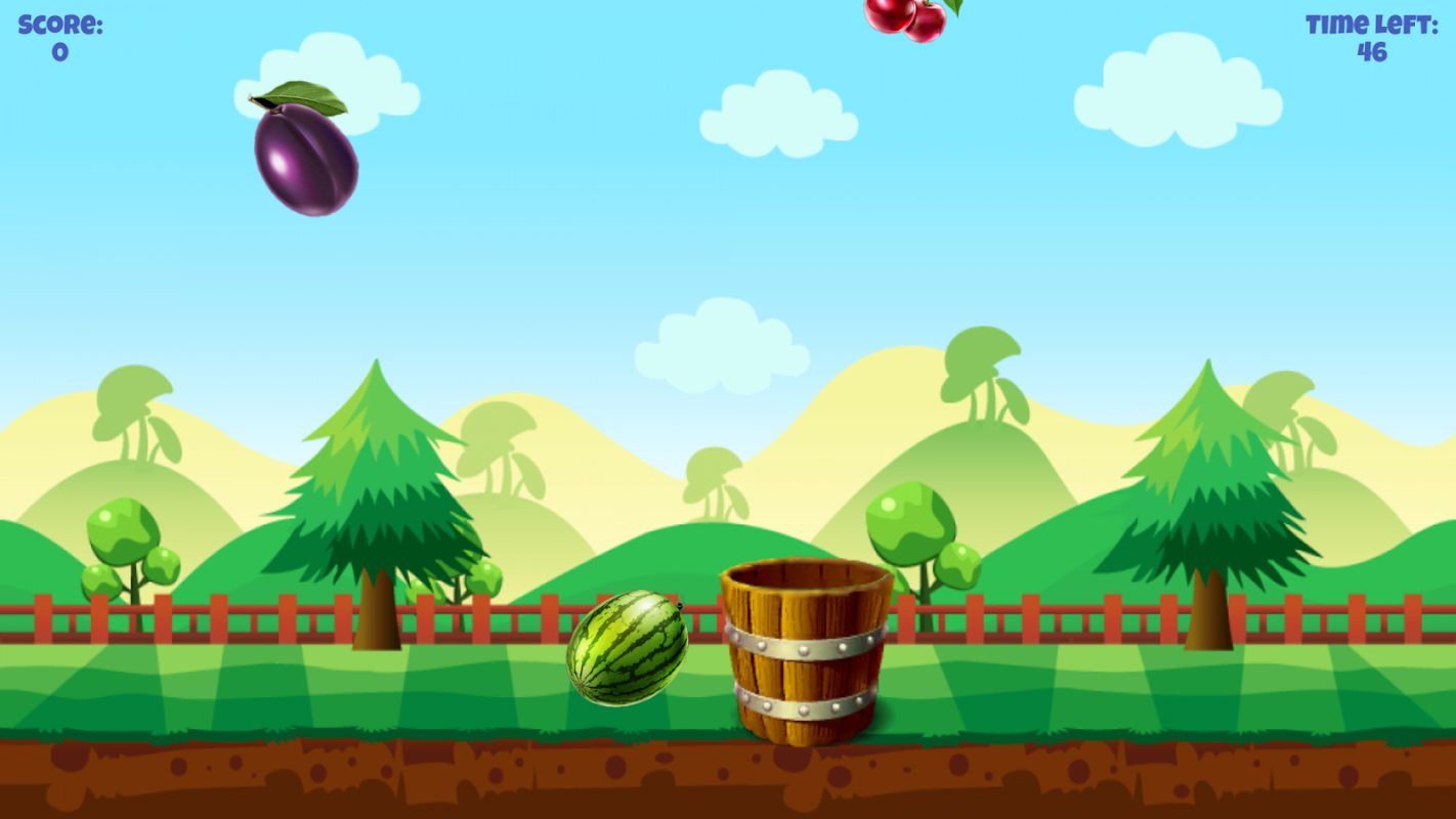 - Each caught fruit will increase 1 score and 1 second of your time.