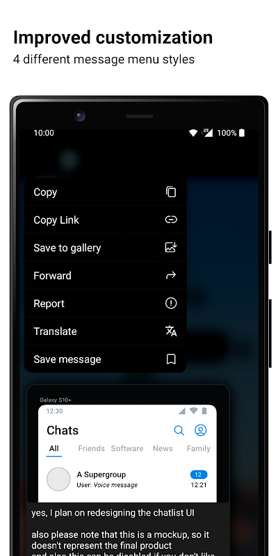 - Chat improvements: 4 different menu styles, sticker size amplifier, in-app translator (alpha)