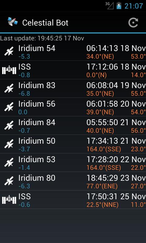 This application displays all iridium flares and international space station passing over your location.