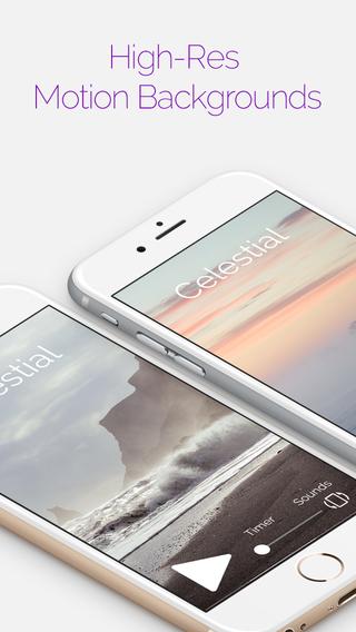 Celestial is a next-gen relaxation app, that uses varying frequencies, high-res motion backgrounds, and soundscapes from around the world, to create the ultimate immersive relaxation experience. All from the comfort of your iOS device.