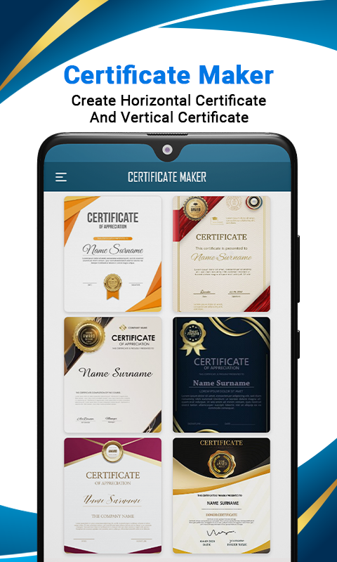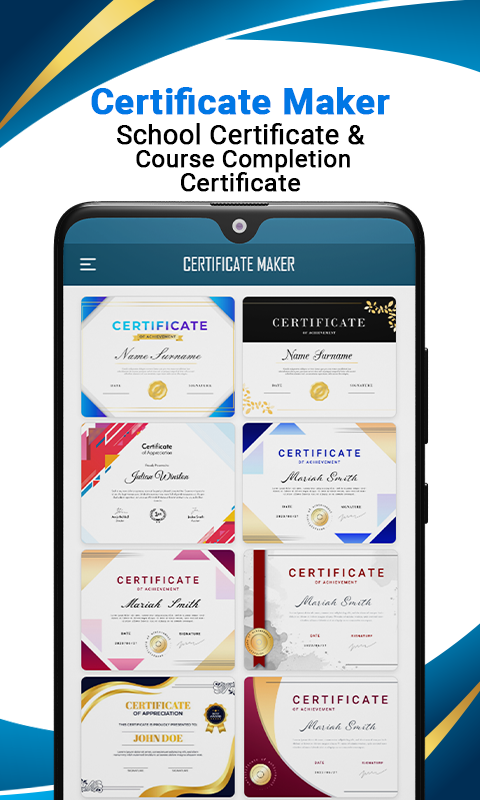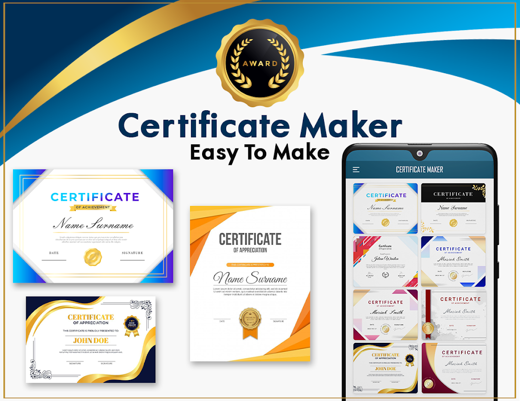 Certificate Maker 앱은 사용자가 전문적인 인증서와 상을 쉽게 만들 수 있도록 설계되었습니다.