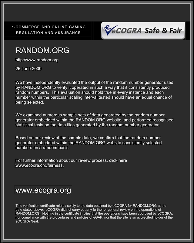 모든 임의성은 평등하게 창조되지 않았다. 이 공식 RANDOM.ORG 응용 프로그램 제공은 진정한 무작위성을 인증 대기 소음 발생과 독립적으로 여러 테스트 기관에 의해 승인. (스크린 샷 샘플 인증서를 참조하십시오.)
