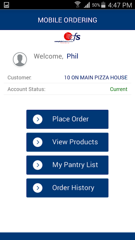 With the CFS FREE mobile ordering app you can now stay completely up to date with the latest specials, newest product lines and even be able to create your own personalised pantry list for super-fast ordering. This FREE CFS App has been designed to make your ordering life easier. Now from the convenience of your own smart phone or tablet you can view our entire range and place orders within minutes. BROWSE THE LATEST PRODUCTS View and order directly from your smart phone or tablet a complete product range with images displayed on selected items. ORDER FROM PANTRY LIST OR ORDER HISTORY You can quickly and easily select your pantry list, select the items you want and place an order in seconds. Use our pantry list, or create your very own. We’ve also included the convenience of re-ordering from your previous orders. SIMPLE AND EASY TO USE With a busy lifestyle, you no longer need to sit in front of a PC to access difficult-to-use online ordering systems. The CFS App has been designed as a super-quick, easy tool to keep you up to date with a full product range and supplier promotions – wherever you are 24 hours a day. INSTANTLY STAY INFORMED. Never miss out on exclusive supplier deals or limited specials. You will receive instant notifications on promotions as they become available. LATEST PRICING Tired of having to call your sales rep to get up-to-date accurate pricing? The CFS App provides real-time pricing on the go. Revised pricing will be immediately available! The CFS App is your convenient mobile ordering companion –you can’t leave home without it.