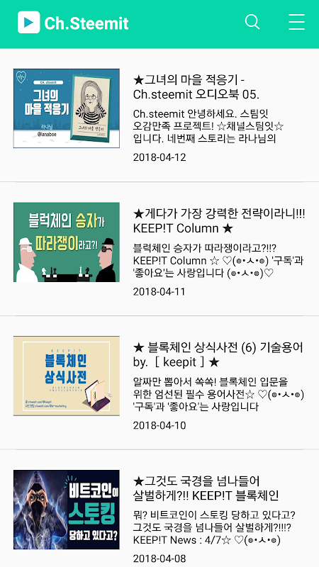 안녕하세요, Ch.Steemit 앱이 출시되었습니다.