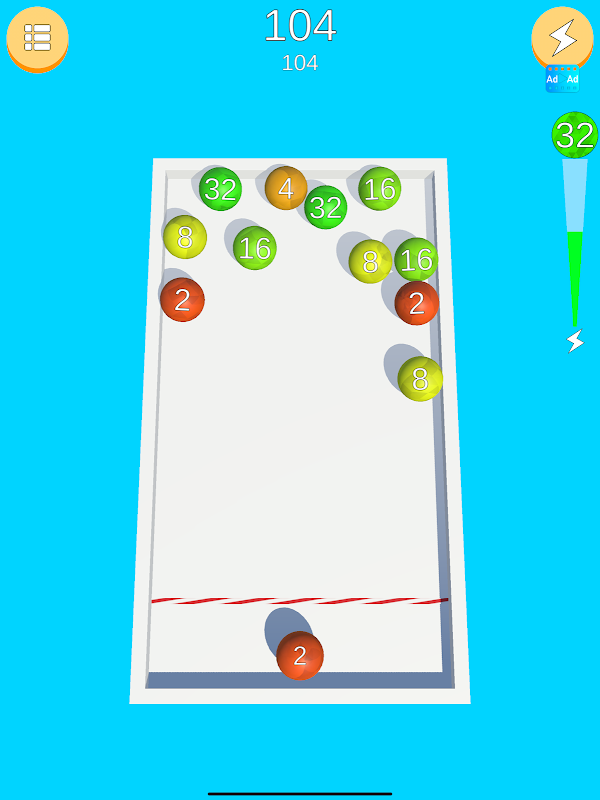 An excellent puzzle with moving balls. Your task is to combine balls with the same numbers. Get the largest number. 1024, 2048, 4096 ...