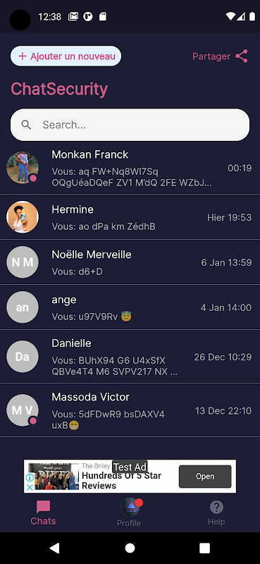 ChatSecurity est d' une application de messagerie qui vous permet d’ avoir une conversation sécurisée . avec cette application vos messages ne sont visibles que pas le destinataire.