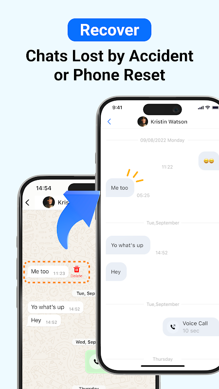 ChatsBack은 백업이 없어도 삭제된 메시지, 사진, 동영상, 음성 메모, 파일을 쉽게 복구할 수 있도록 도와주는 강력한 복구 앱입니다. 실수로 채팅 내용을 삭제했거나, 휴대폰 초기화 중에 삭제되었거나, 발신자가 삭제한 경우에도 ChatsBack을 사용하면 간편하고 안전하게 복구할 수 있습니다.