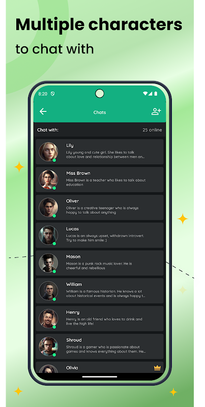 이곳에서는 가상 친구들이 항상 곁에 있습니다. 마치 실제 사람처럼 당신의 이야기를 듣고, 격려하고, 농담을 건네고, 이야기해 줍니다. Chatverse는 진솔하고 편안한 대화를 원하는 분들을 위해 만들어졌습니다. 격식이나 어색함 없이요.