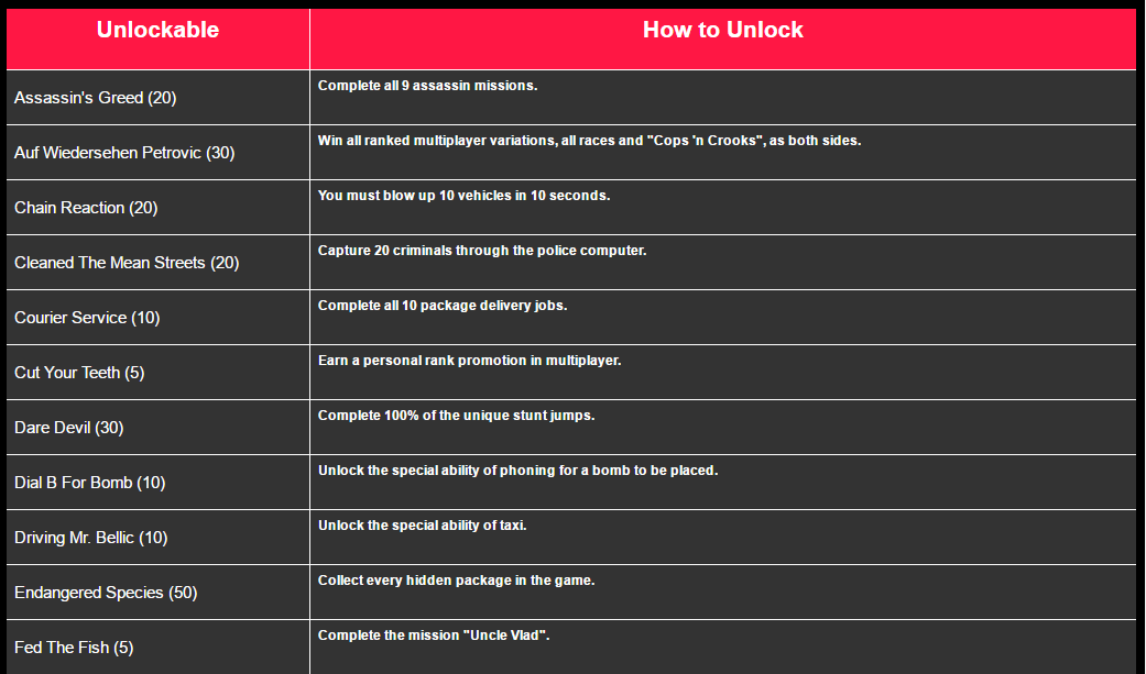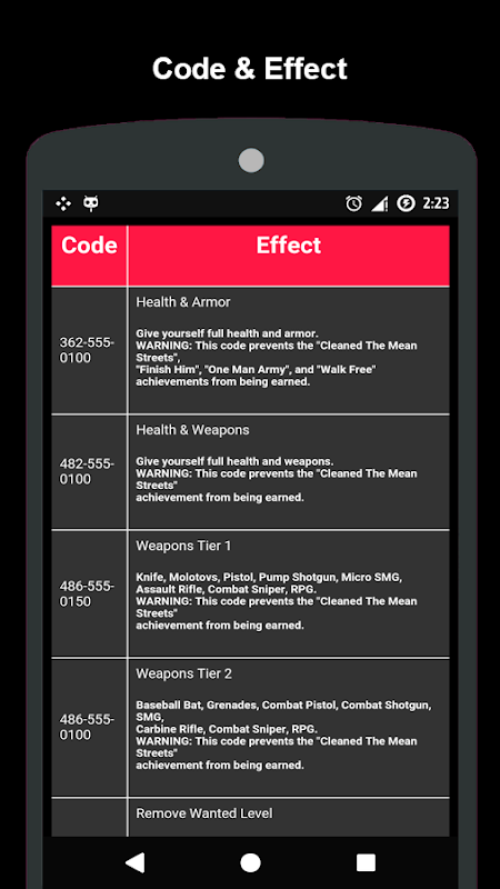 Cheats are entered during normal gameplay by using Niko's cell phone. To enter a cheat, bring up the cell phone and enter the code given in the table below. A 'Cheat Activated' message will confirm correct entry.