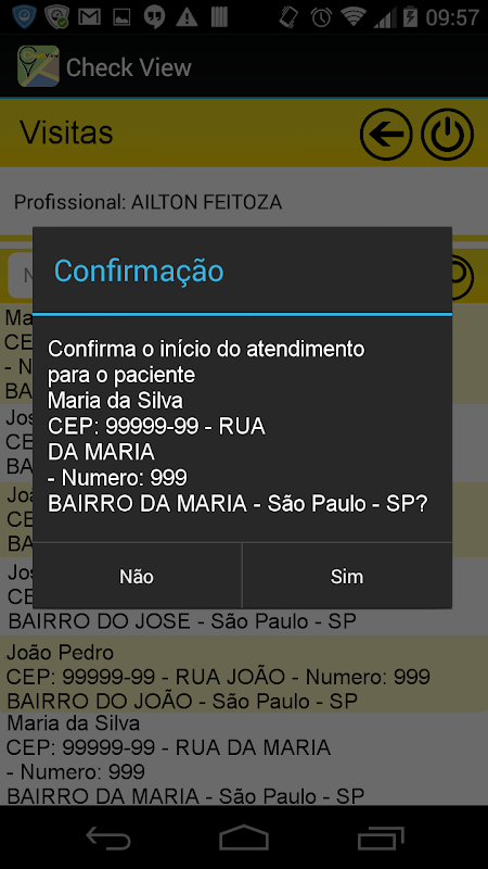 Com esse aplicativo o profissional tem acesso a lista de pacientes que ele deve visitar no dia, tendo acesso ao nome, endereço e outras informações sobre o paciente a ser visitado.