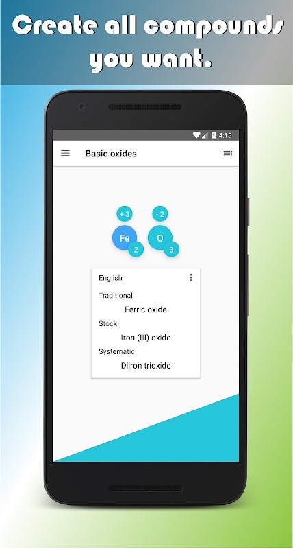 Practice and learn with many chemical compounds with only selecting an element and its type.