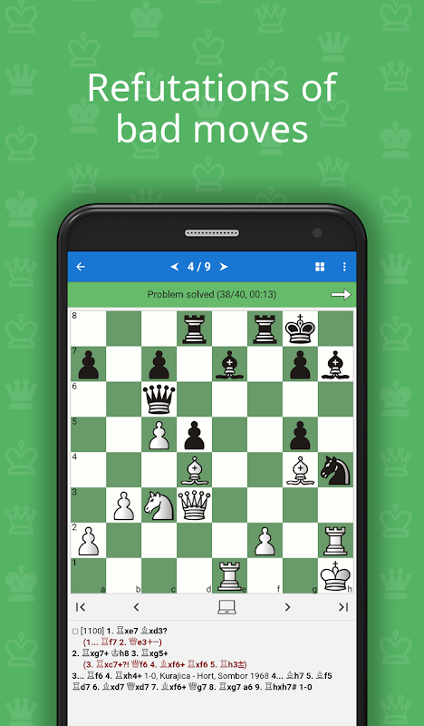 이 과정의 도움으로, 당신은, 당신의 체스 지식을 향상시킬 새로운 전술 트릭과 조합을 배우고, 연습으로 획득 한 지식을 통합 할 수 있습니다.