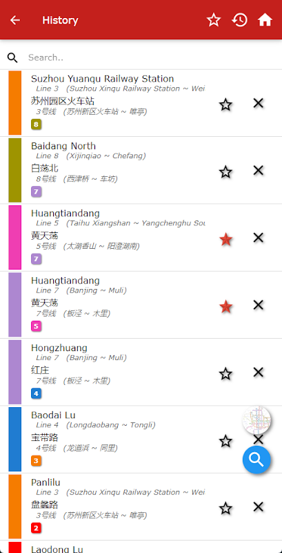 중국 쑤저우 지하철의 최신 오프라인 대중교통 지도