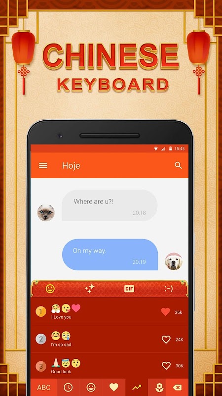 This Chinese Keyboard Theme uses Facemoji Keyboard Facemoji Keyboard + GIFS. Please click the link to have it installed first.