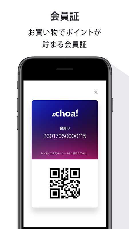 商品紹介はもちろん、会員証(ポイントカード)や店舗情報など、&choa!(アンド・チョア)の最新情報が詰まったアプリです!
