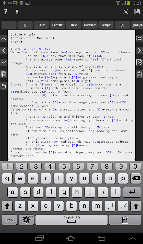 ChordPro과 온성 리더 편집기 변환기와 안드로이드를위한 연주곡 관리자