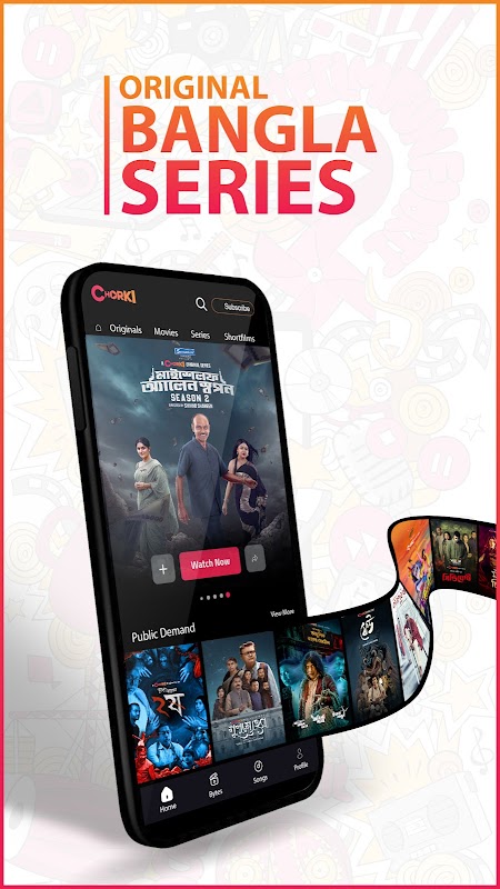 흥미진진한 극장 개봉작이 여기 Chorki에 있으며, 여러분에게 손끝에서 개인화된 영화관 경험을 제공합니다.
