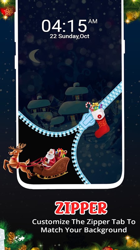 정말 독특하고 사용자 정의 가능한 방식으로 휴대전화의 잠금을 해제하시겠습니까? 새로운 크리스마스 잠금 화면을 사용하면 사물함 화면과 장치 배경에 대한 배경 화면을 직접 선택할 수 있습니다. 또한 자신에게 가장 적합한 조합을 찾을 때까지 간단한 클릭만으로 지퍼 스타일, 색상 및 디자인을 변경할 수 있습니다.