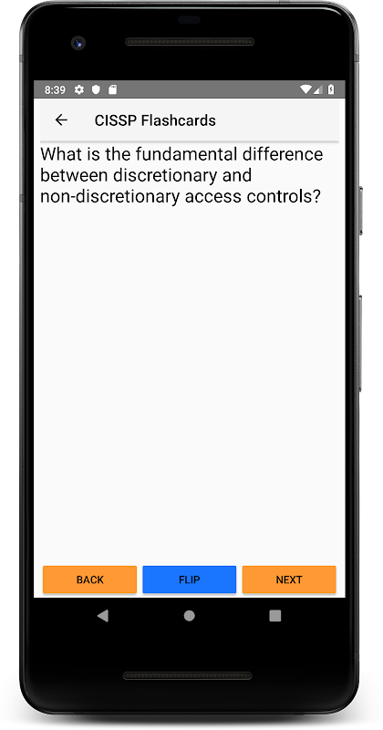 나는, 매끄러운 깨끗하고 직관적 인 인터페이스에 표시 내 CISSP 시험 처음 전달하는 데 사용되는 전문 CISSP의 플래시 카드. 지금 다운로드하고 당신의 두뇌에게 운동을 제공 🤯!