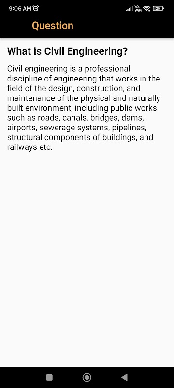 토목 공학 인터뷰 질문: 토목 공학에 특별히 관심이 있는 분들을 위해 저희 앱에는 토목 공학 개념에 초점을 맞춘 100개 이상의 질문이 있는 전용 섹션이 포함되어 있습니다. 지식을 심화하고 토목 공학 인터뷰 시나리오에 대한 자신감을 높이십시오.