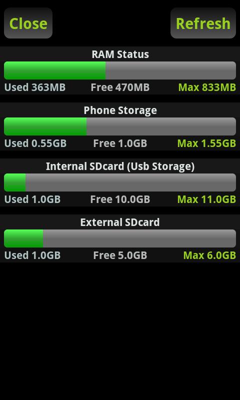 • Ram, Phone Storage, Internal External SDcard (Usb Storage) memory