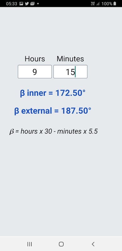 시침과 분침 사이의 각도를 계산합니다.