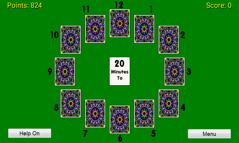 Clock Face is my Clock Patience/Solitaire card game adapted to a program for helping to learn how to tell the time.
