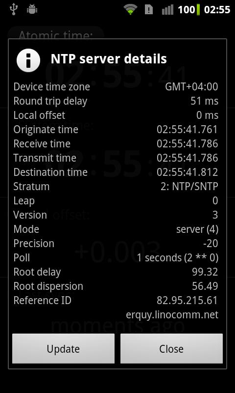 ClockSync synchronizes device system clock with atomic time from Internet via NTP (Network Time Protocol).