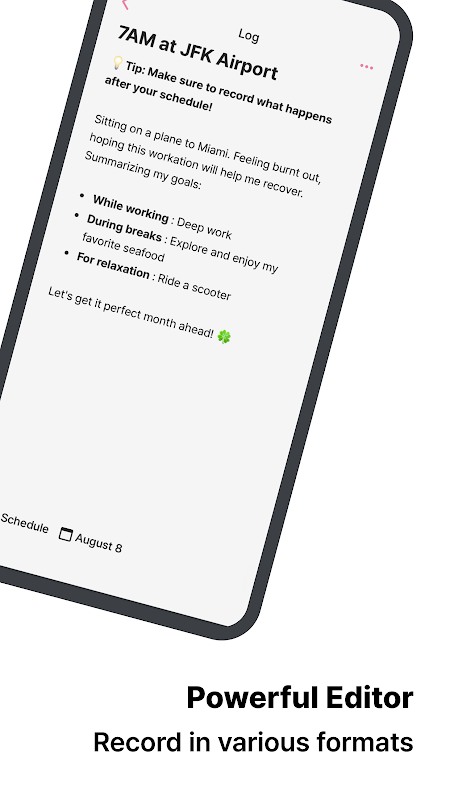 - 강력한 에디터: 텍스트, 체크리스트, 링크 등 다양한 형식으로 자유롭게 기록할 수 있습니다.