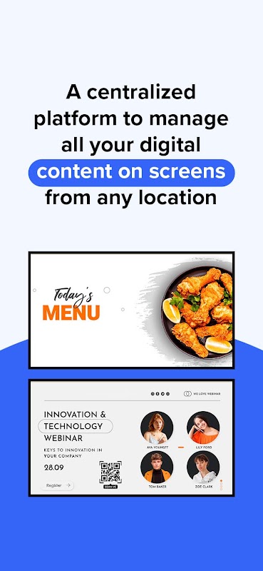 모든 디지털 화면에서 컨텐츠를 생성, 디자인 및 예약하기 위해 구축 된 전달 응용 프로그램입니다. 클라우드 애드워즈를 사용하면 기기를 추가하거나 기본 레이아웃을 사용하거나 나만의 맞춤 레이아웃을 만들 수 있습니다. 라이브러리 위젯에서 미디어를 끌어다 놓기 만하면됩니다. HD 비디오, 동적 슬라이드 쇼, 날씨, Facebook, Twitter, Instagram, RSS, 가상 대기열, 웹 사이트 통합, 대화 형 설문 조사 등.