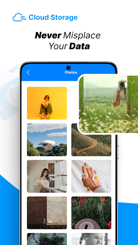 Cloud Storage Cloud Drive Backup your photos video music contacts to give you a secure phone usage experience. Forget the baseless fears of losing data because cloud drive does automatic data backup for you. Store your backup pictures in extra storage space Cloud Storage for Android.